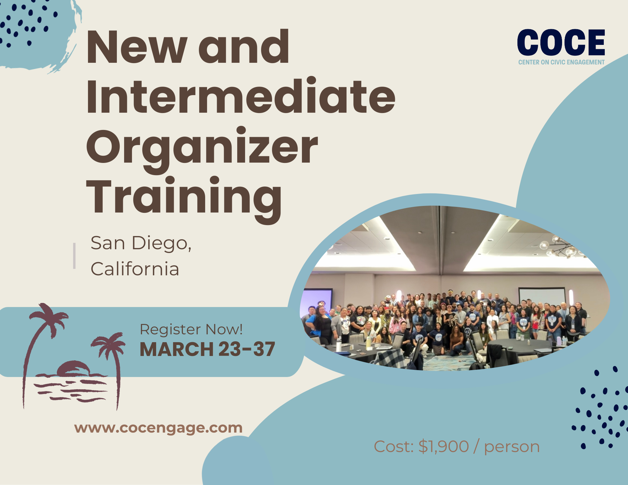 We're excited to announce that the first of our two New & Intermediate Organizer Trainings this year will take place in San Diego, California in March! This year's trainings will teach you the necessary skills for successfully executing campaigns in 2026. Sessions and simulations will be led by leaders at COCE, alongside a community of experienced organizers.